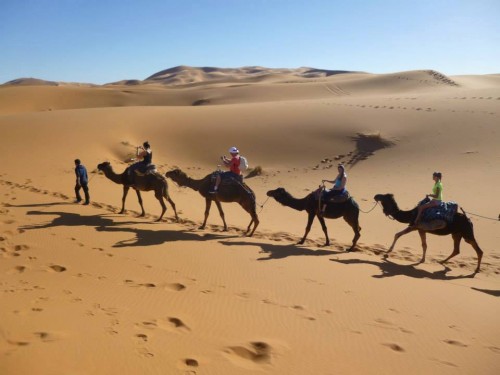 Depuis le village vous monterez sur les dromadaires ettraversez les dunes de l’Erg Chebi pour arriver au campement berbère.